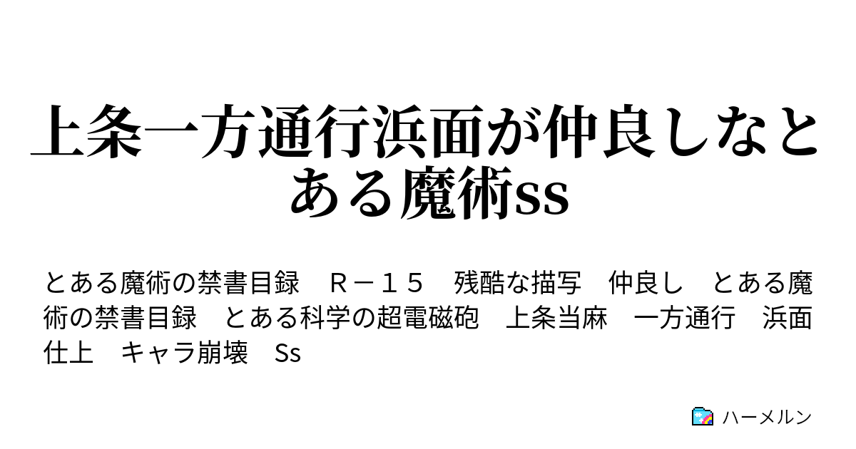 "とある 上条コーポレーション" is episode no 3 of the novel series "とある 食蜂操祈ヒロインSS" It includes tags such as "とある魔術の禁書目録", "食蜂操祈" and more とある 上条コーポレーション 「操祈、そっちの方は片付いたか?」 闇の奥から青年の声が聞こえてきた。 "とある未来の上条喫茶" is episode no 1 of the novel series "上条の喫茶" It includes tags such as "とある魔術の禁書目録", "初春飾利" and more お久しぶりです。最近コーヒーにはまっているしだい。それゆえに始めたシリーズです。 できるだけ禁書のキャラクター登場させたいです。 とある魔術の禁書目録SSキャラ別まとめ 垣根帝督SS上条「お前、今気になる人いたりする? 」土御門「えっ」 17/2/27 上条当麻, 土御門元春, 垣根帝督, 禁書目録(インデックス) 1:以下、名無しにかわりましてVIPがお送りします: (月) ID5c2J5Av70 上条 禁書目録・上黒SS黒子「上条さんですよねぇ? 」上条「すまん白井! !